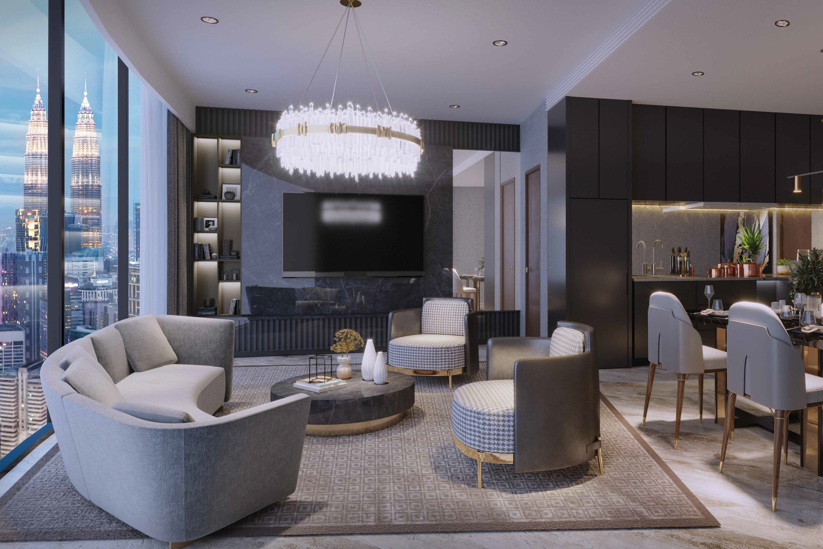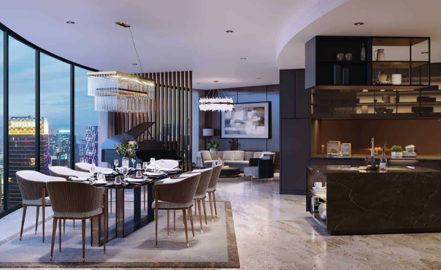 Residences feature interiors inspired by contemporary hospitality design, focusing on comfort, functionality, and modern aesthetics.