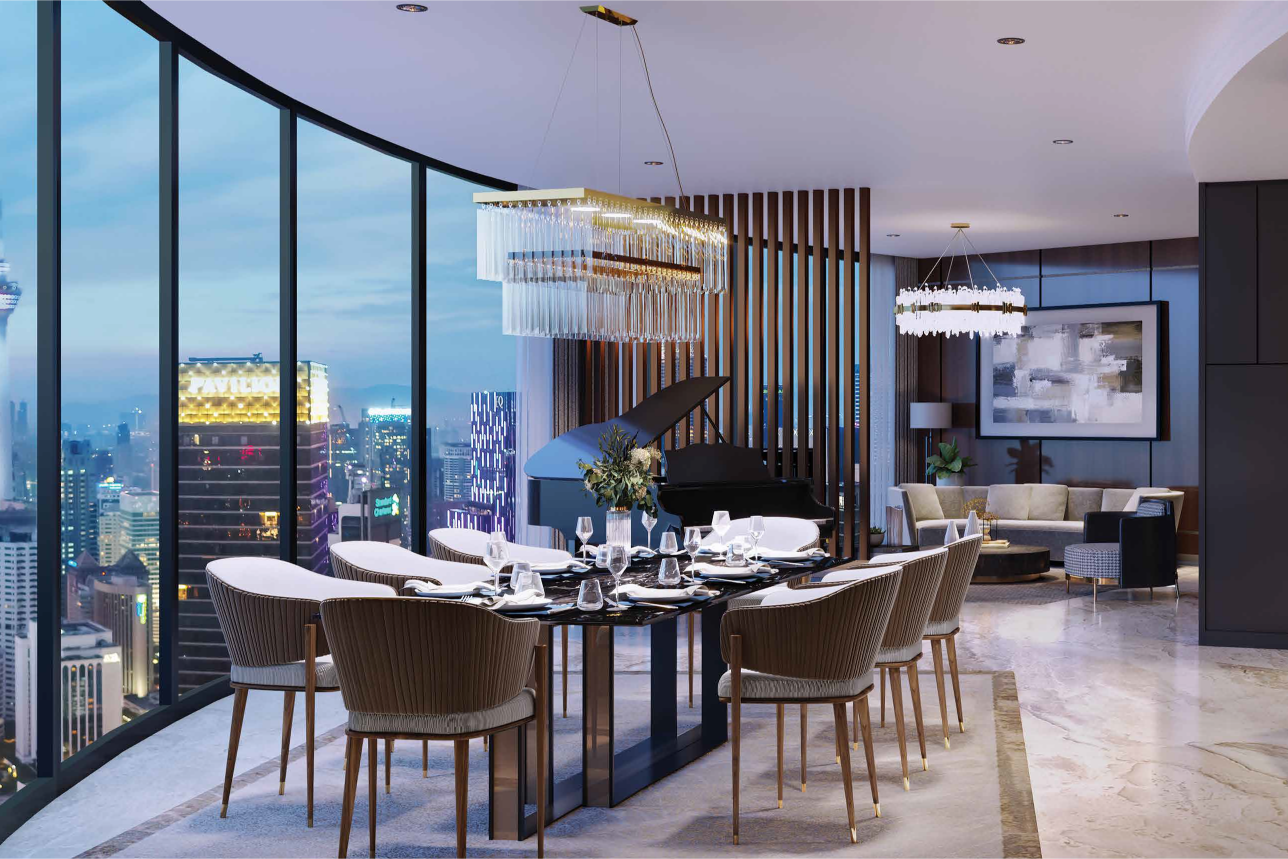 A serviced residence concept that combines private residential living with selected hospitality-inspired features, subject to management arrangements.